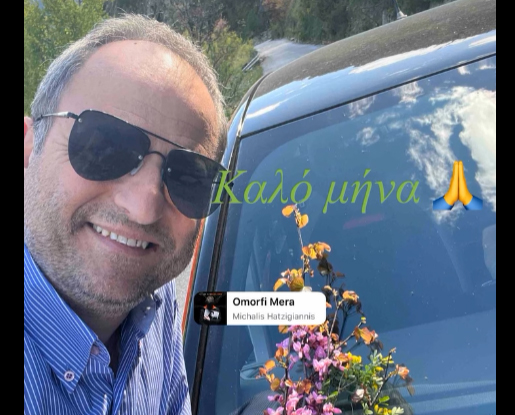 Ο φιλόδοξος δημοτικός σύμβουλος Πύλης έβαλε και… λουλούδια στο παρμπρίζ για το καλό της ημέρας και βρήκε φίλους και γνωστούς για να το γιορτάσει.