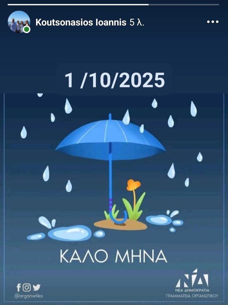 Τη μελαγχολία και τη θαλπωρή του φθινοπώρου μας φέρνει ο Ιωάννης Κουτσονάσιος ο ιατρός, ο και πρόεδρος της ΔΕΕΠ Ν.Δ. Τρικάλων με εμπνευσμένο μήνυμα για την υποδοχή του Οκτώβρη.