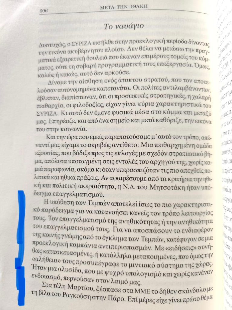 Κάνει λόγο για στοχοποίηση του πρώην υπουργού και πόλεμο λάσπης που εκτόξευσαν εναντίον του συστημικά ΜΜΕ, παραμονές των εκλογών του 2023 για το σπίτι της οικογένειάς του στην Πάρο. Ο πρώην πρωθυπουργός απλώνει δίχτυ προστασίας πάνω από τον Γιάννη Ραγκούση και μπορούμε να το εκλάβουμε και ως… σήμα για το μέλλον. Δείτε τα αποσπάσματα: