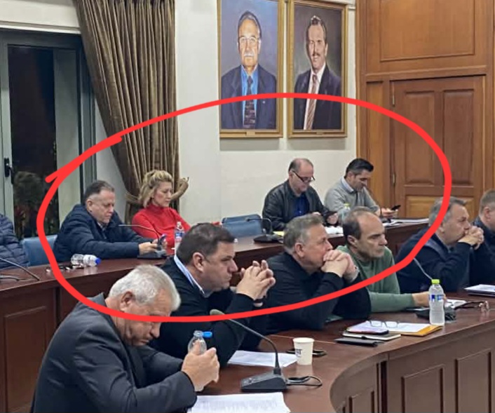 Προσηλωμένοι στα κινητά τους οι Ζαραμπούκας, Τέγου-Καρακούση, sir Takis και Ζιώγας κατά τη χθεσινοβραδινή συνεδρίαση του Δ.Σ. Τρικκαίων.