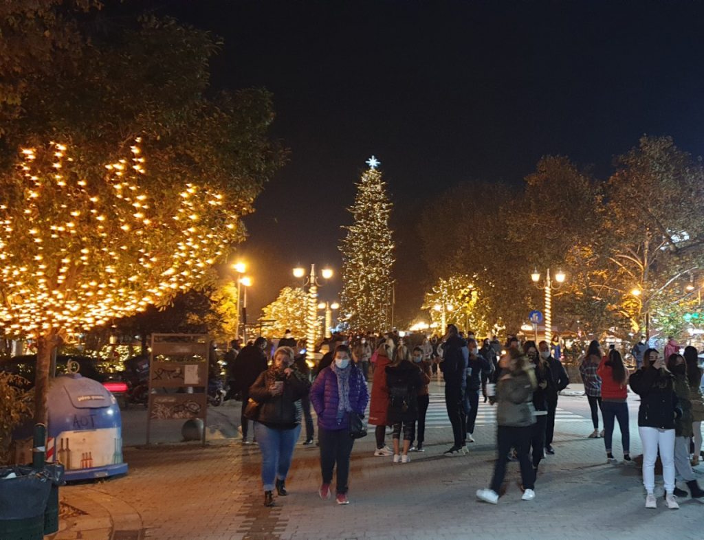 Δίχως τη λάμψη και τα τραγούδια άλλων εποχών άναψε το βράδυ της Παρασκευής το Χριστουγεννιάτικο δέντρο στην πόλη.