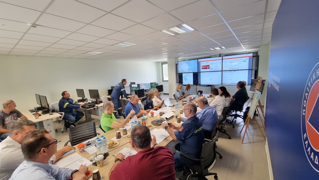 Προσωπικό του Πυροσβεστικού Σώματος διαβίβαζε εικονικά κλιμακούμενα επεισόδια στο Διευθύνον Επιτελείο, με απώτερο στόχο την ενσωμάτωση των ρόλων και αρμοδιοτήτων κάθε φορέα και Υπηρεσίας, ώστε να αξιολογηθούν στο μέτρο του δυνατού οι εφαρμοζόμενες διαδικασίες κατά τη διάρκεια των πυροσβεστικών επιχειρήσεων.