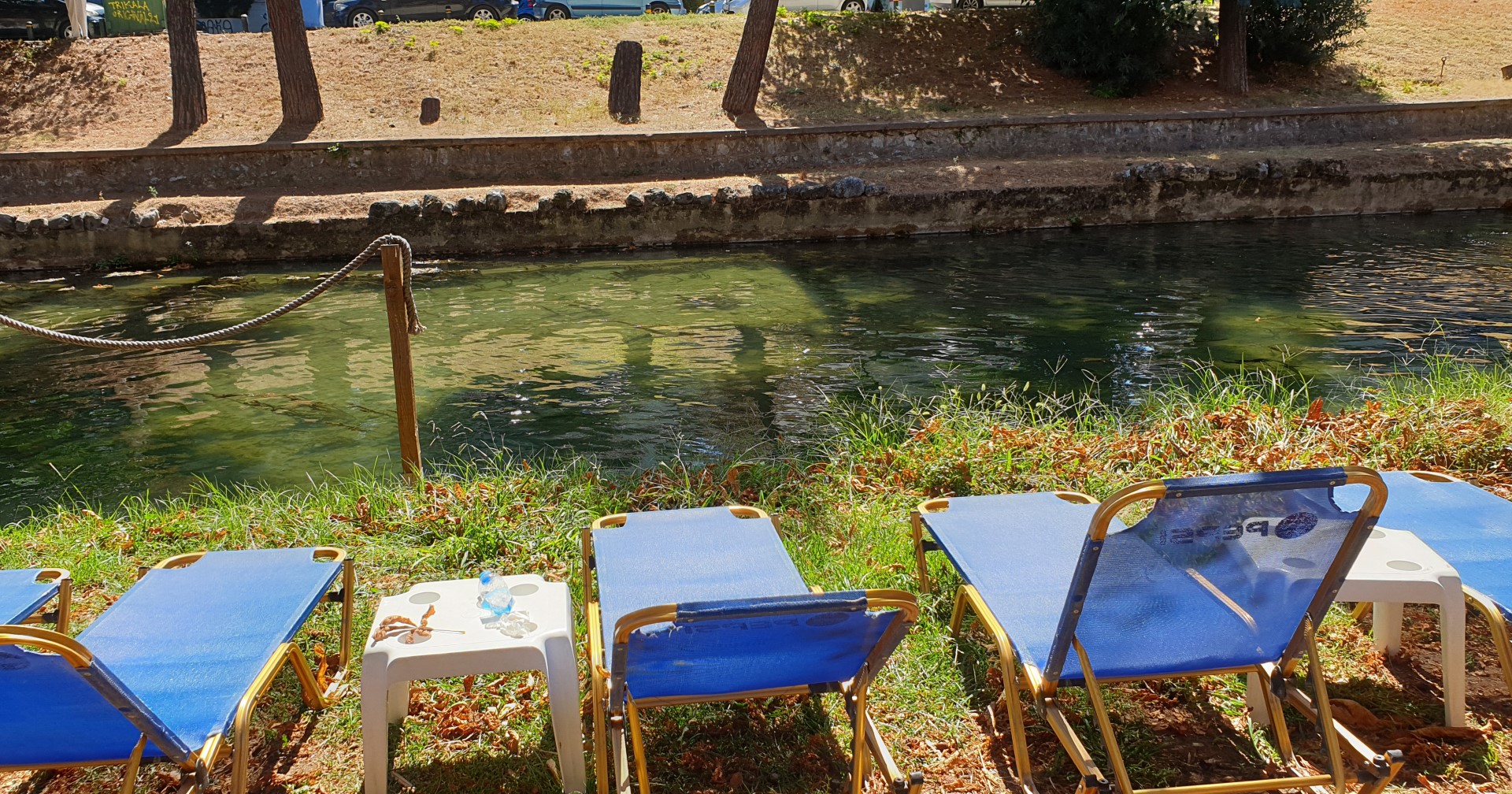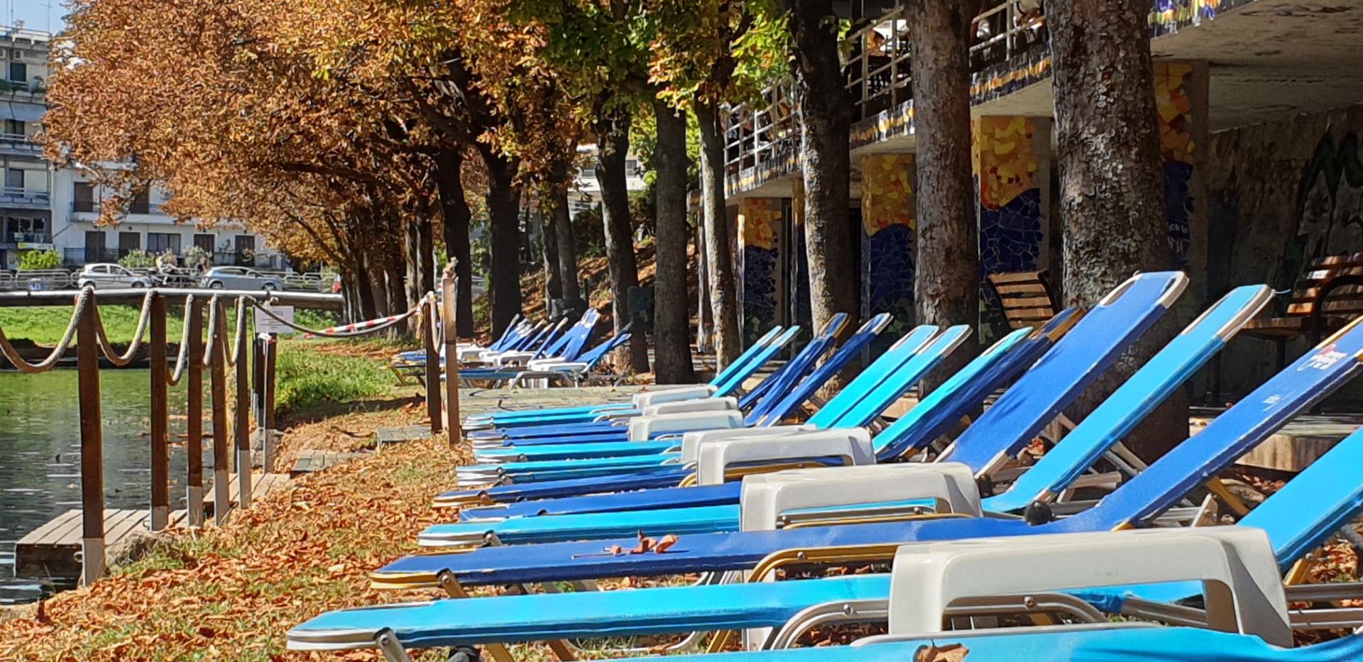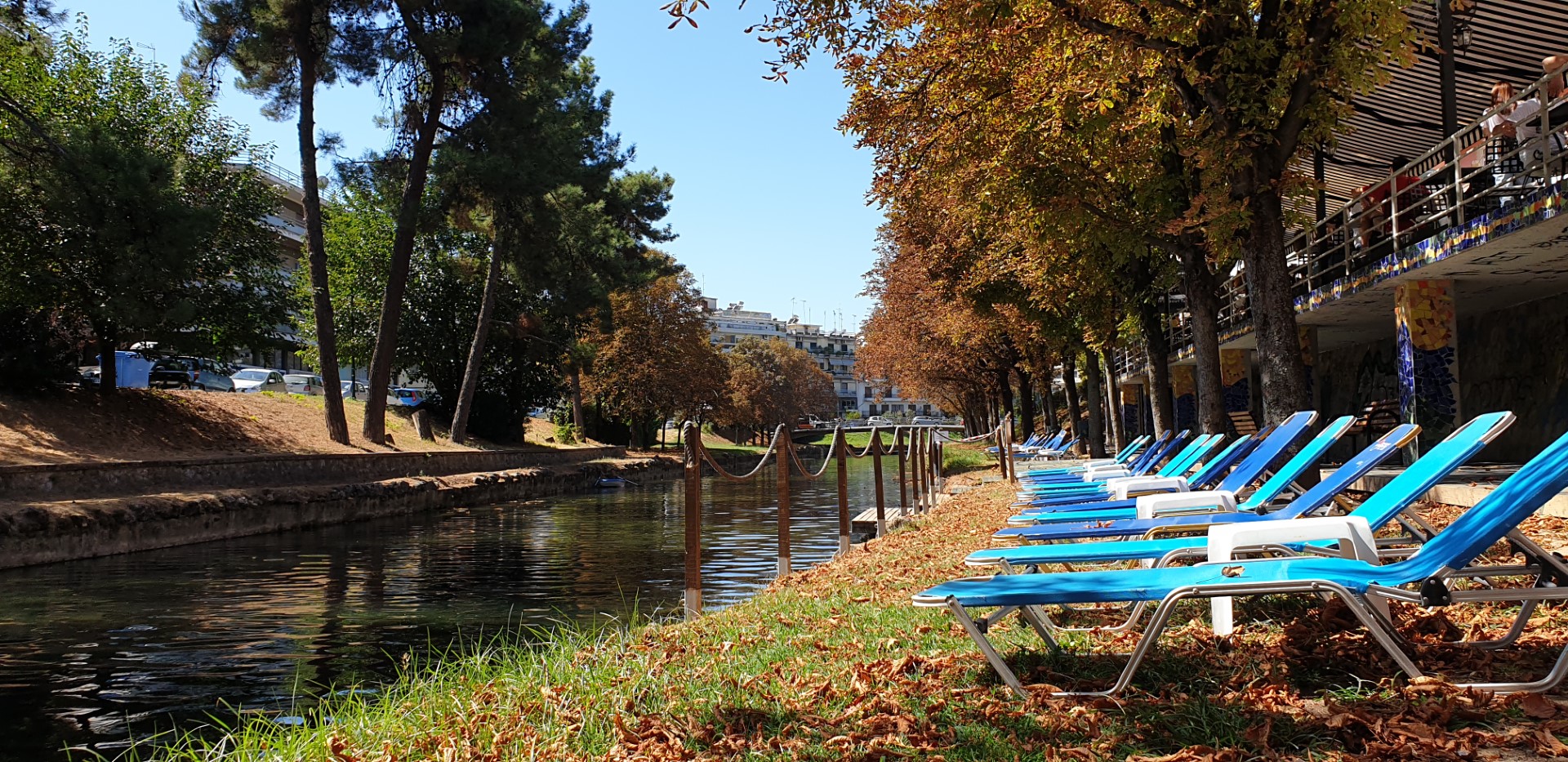 Όπως καταγράφει το trikalavoice.gr κάτω από την παραποτάμια οδό Αμαλίας που έκλεισε πειραματικά και για μια εβδομάδα με στόχο να πεζοδρομηθεί (δείτε ΕΔΩ) στήθηκαν ξαπλώστρες και τραπεζάκια για να απολαμβάνει όποιος θέλει το ποτάμι… σαν να είναι θάλασσα.