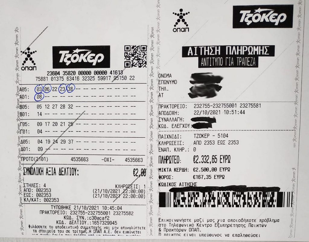 Το… έβγαλε το μηνιάτικο (… και δυο μήνες μη σας πούμε) τυχερός Τρικαλινός. Έπαιξε ΤΖΟΚΕΡ στο πρακτορείο ΟΠΑΠ επί της οδού Καραϊσκάκη 63 και έπιασε 4 νούμερα+ Τζόκερ σε μια από τις στήλες.