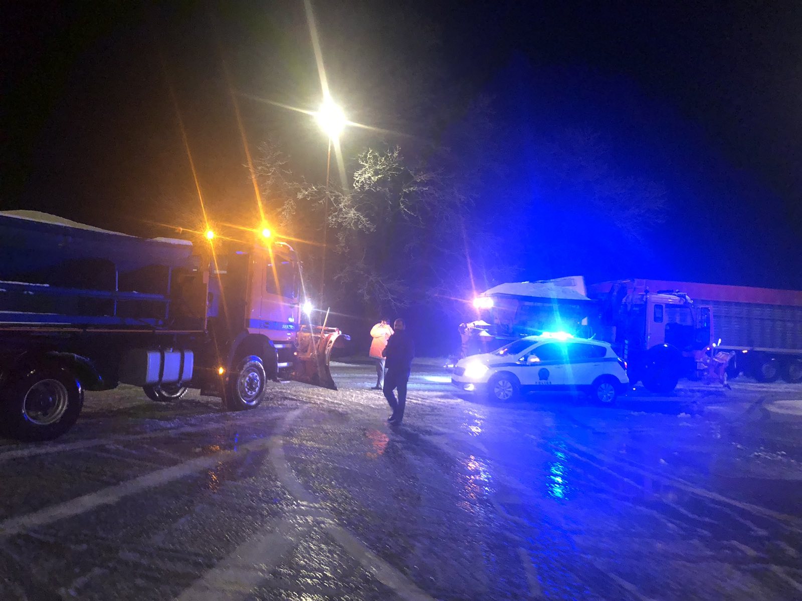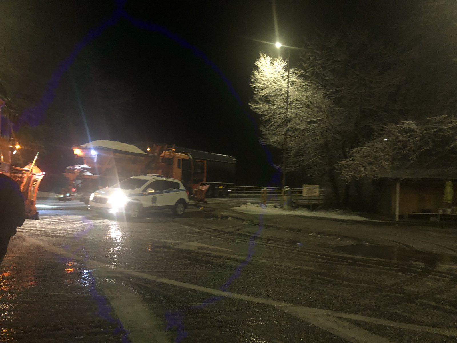 Όπως καταγράφει το trikalavoice.gr μηχανήματα της Π.Ε. Τρικάλων επιχειρούν στο οδικό δίκτυο της περιοχής ενώ με το που έπεσε η νύχτα απαγορεύτηκε η κίνηση στην ε.ο. Τρικάλων-Ιωαννίνων των φορτηγών, τα οποία σταματούν στη γέφυρα στο Μουργκάνι.