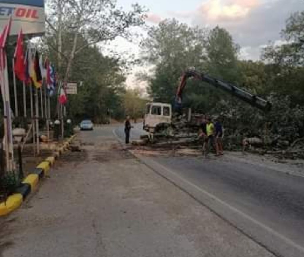 Ειδικά συνεργεία ανέλαβαν να κόψουν τα δέντρα για να τα απομακρύνουν από το οδόστρωμα ενώ η κίνηση διοχετεύτηκε από παρακαμπτήριες οδούς.