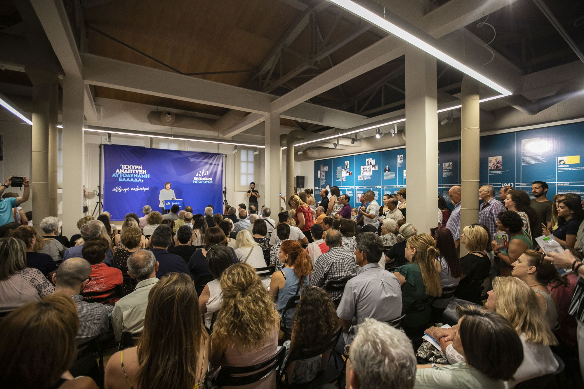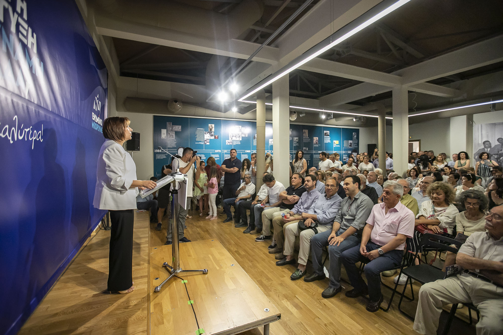 Η ίδια εμφανίστηκε συγκινημένη και ευχαρίστησε τον κόσμο για την αυθόρμητη προσέλευσή του. «Θα κάνω τα πάντα για να φανώ αντάξια αυτής» είπε και εξήγησε τους λόγους που την κάνουν να πολιτεύεται με τη Ν.Δ.: « Εγώ είμαι τυχερή γιατί κατεβαίνω υποψήφια με τη Νέα Δημοκρατία και πρόεδρο τον Κυριάκο Μητσοτάκη, έναν άνθρωπο, ένα πολιτικό που δεν οραματίζεται απλώς, αλλά μετατρέπει το όραμα σε υλοποιήσιμο πρόγραμμα, που δεν καλλιεργεί φρούδες ελπίδες, αλλά μιλάει την γλώσσα της αλήθειας.