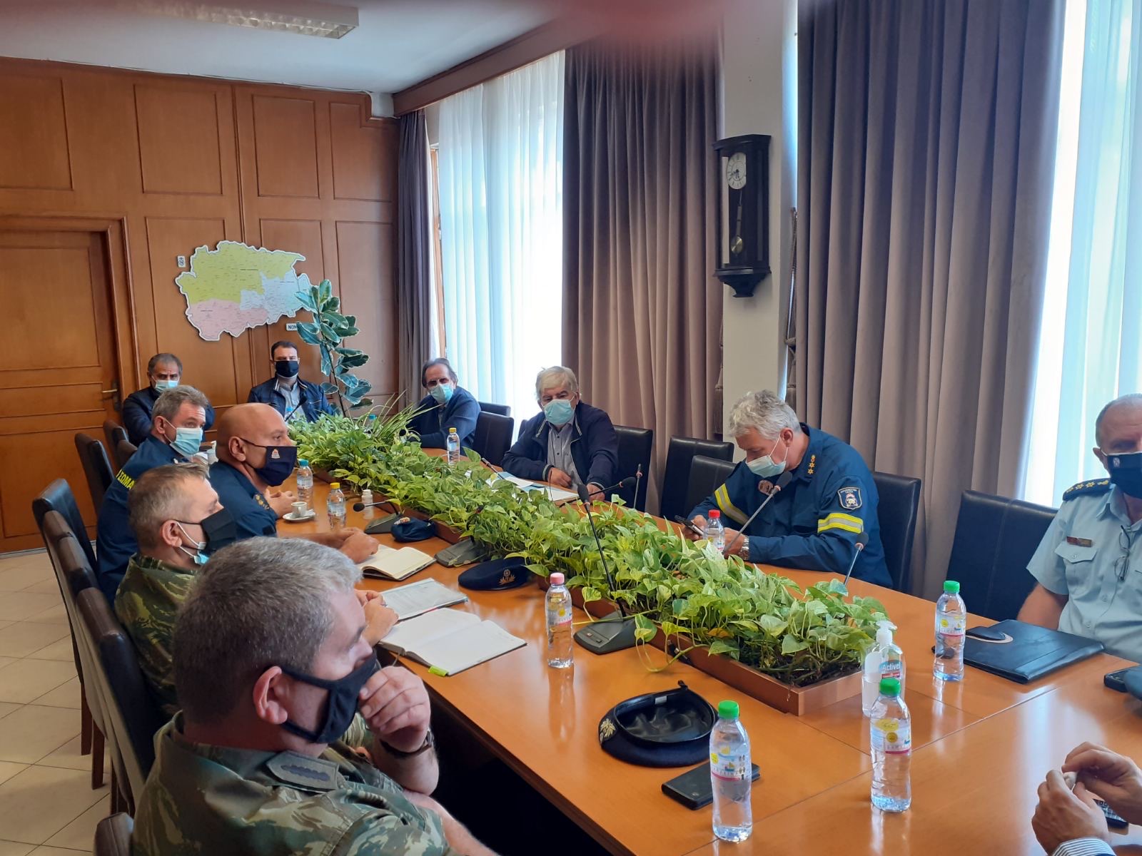 Συζητήθηκε η ετοιμότητα της πολιτικής προστασίας όσον αφορά το έκτακτο δελτίο επικίνδυνων καιρικών φαινομένων με όνομα «ΜΠΑΛΛΟΣ» που θα προκαλέσει κακοκαιρία στην χώρα μας από την Πέμπτη 14-10-2021 με κύρια χαρακτηριστικά τις ΙΣΧΥΡΕΣ ΒΡΟΧΕΣ και ΚΑΤΑΙΓΙΔΕΣ σε συνδυασμό με ισχυρούς ανέμους.