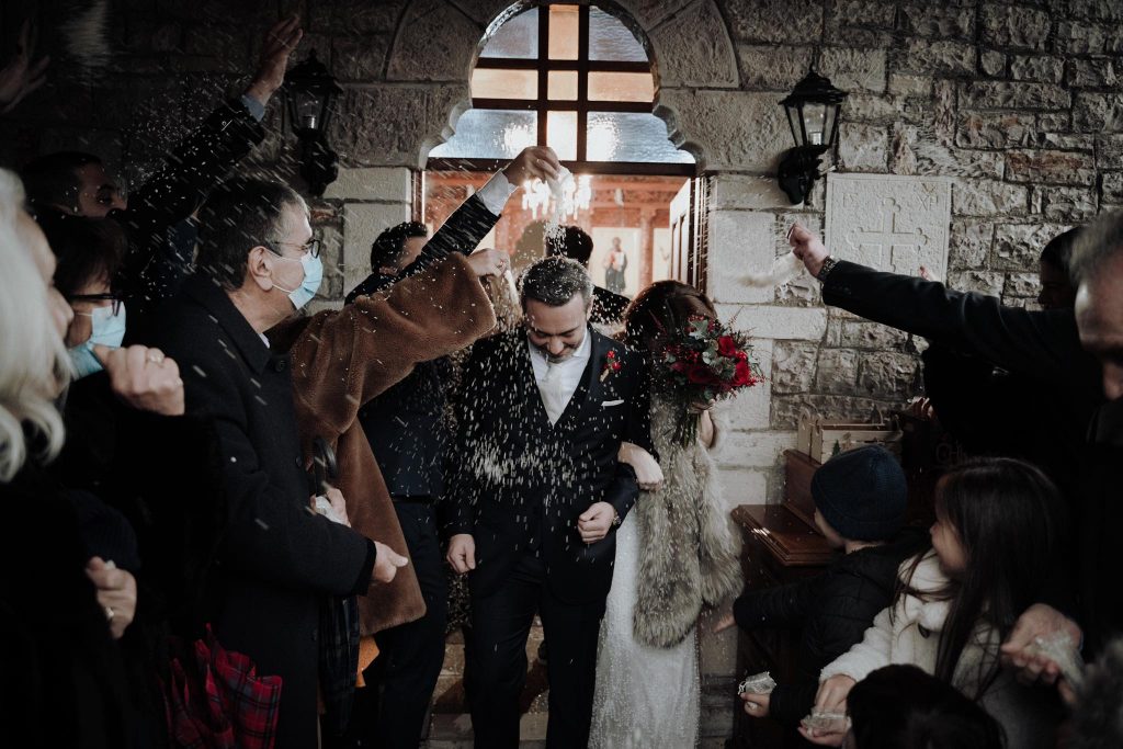 Χειμωνιάτικο σκηνικό, με χιόνι να πέφτει και να σκεπάζει τα πάντα στο “Αρχοντικό Χατζηγάκη” στο Περτούλι, αλλά δυο… ζεστές καρδιές ενώθηκαν με τα ιερά δεσμά του γάμου.