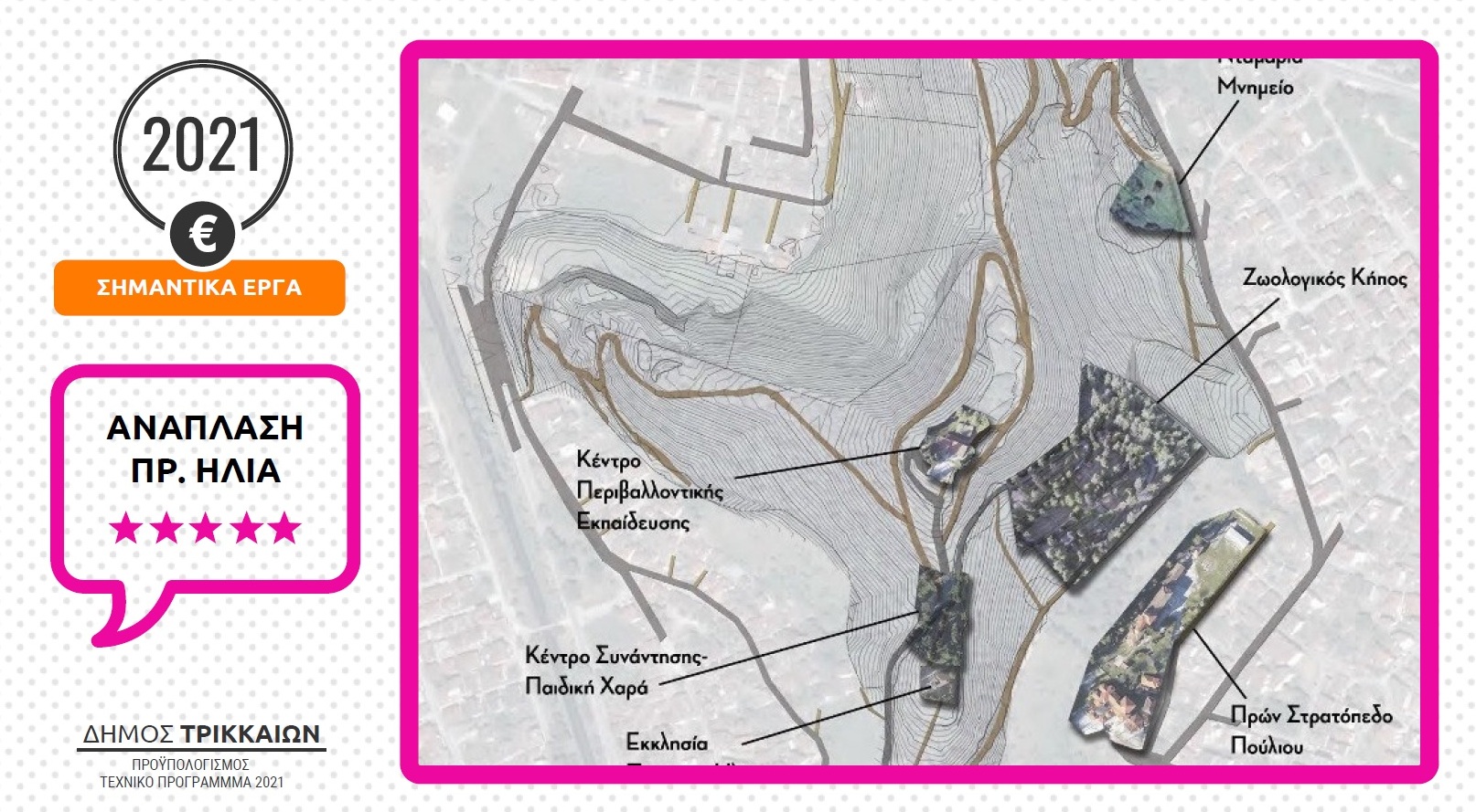 α) Ανάπλαση Λόφου Προφήτη Ηλία και β) Δημιουργία Διαδραστικού χώρου Τεχνολογίας στην Πρώην ΤΑΞΥΠ Τρικάλων: 6.200.000 €