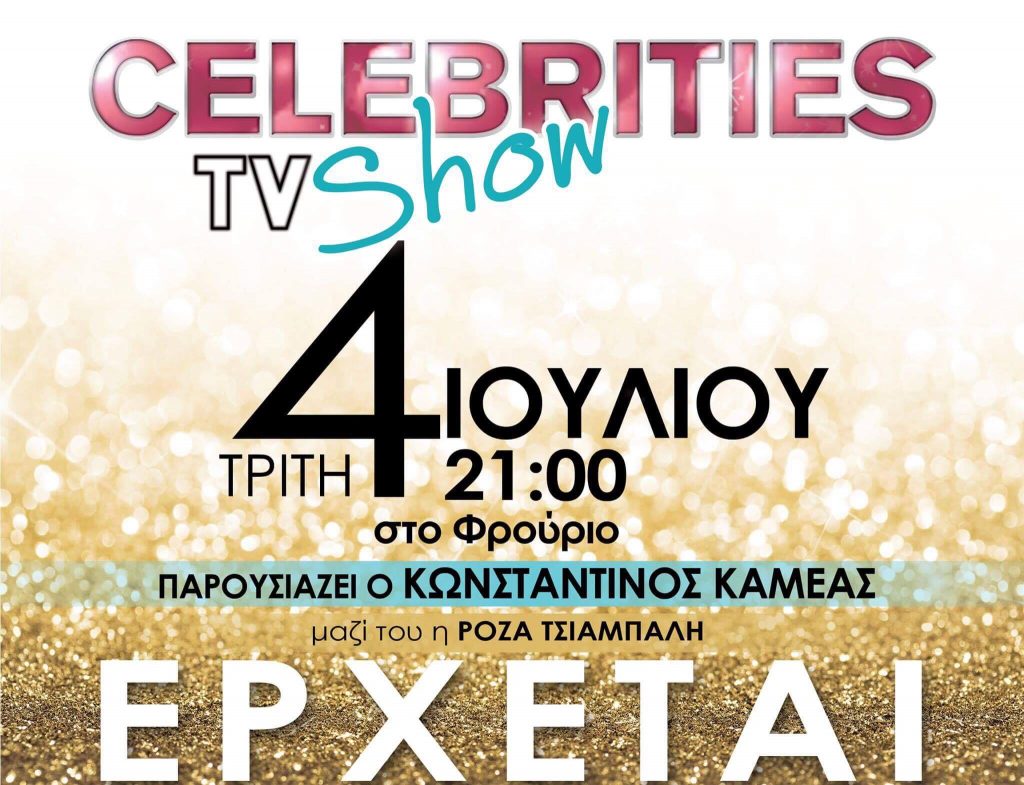 Την Τρίτη 4 Ιουλίου στις 9 το βράδυ στο επιβλητικό Φρούριο θα πραγματοποιηθεί το CELEBRITIES TV SHOW το οποίο θα μεταδοθεί από την τηλεόραση του ASTRA.