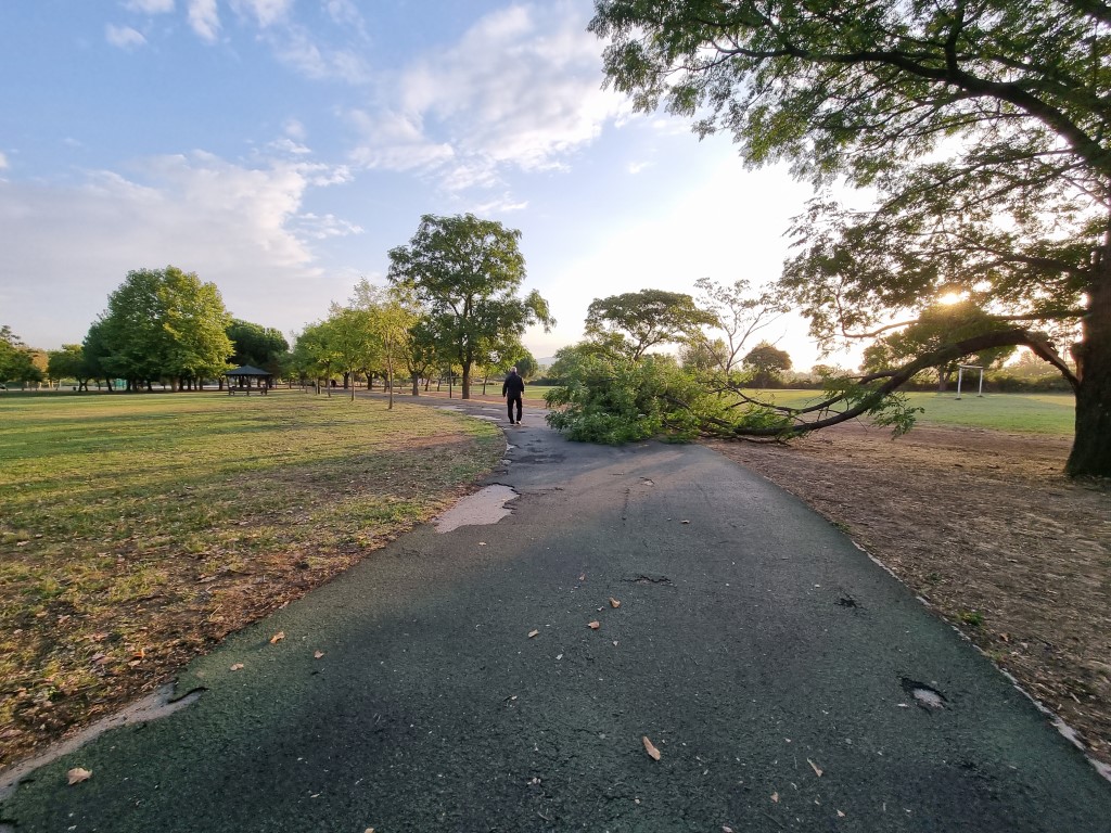 Όπως καταγράφει το trikalavoice.gr τα κλαδιά του δέντρου έπεσαν πάνω στο ταρτάν του στίβου-μικρό διάδρομο- ευτυχώς χωρίς απρόοπτα μιας και εκεί αθλούνται καθημερινά δεκάδες Τρικαλινοί. Αναμένεται η υπηρεσία Πρασίνου να μαζέψει το πεσμένο δέντρο και να ελέγξει αν υπάρχουν και άλλα επικίνδυνα τέτοια στο πάρκο.