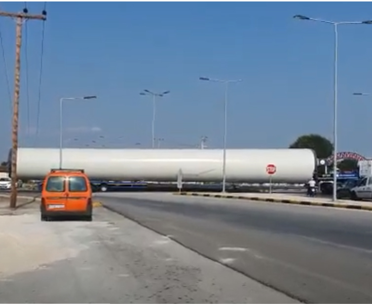 Ειδικές κυκλοφοριακές ρυθμίσεις εφαρμόστηκαν και σήμερα στο οδικό δίκτυο του Νομού μας προκειμένου να διέλθουν τα φορτηγά που μεταφέρουν τα γιγάντια εξαρτήματα για την σύνθεση των ανεμογεννητριών.