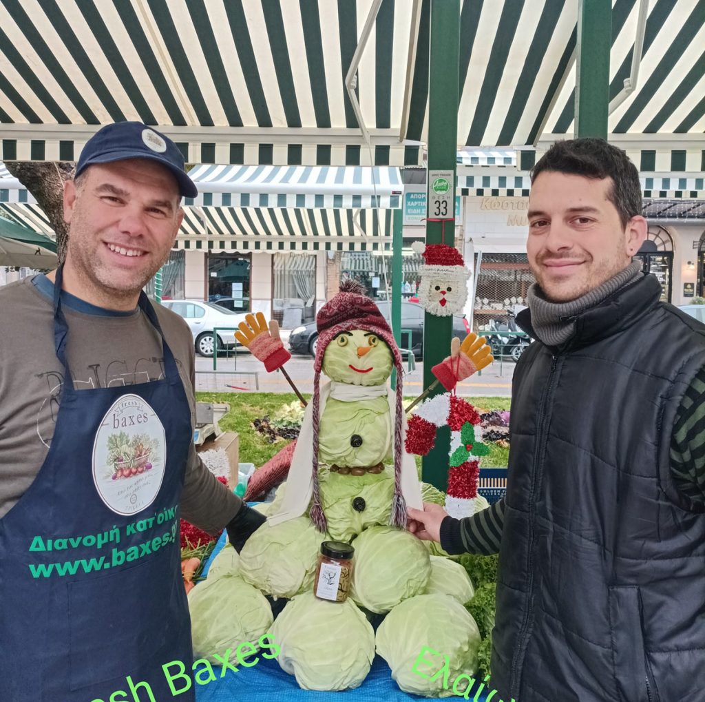 Στον πάγκο του, στη θέση 33, βρίσκουμε εκτός από τα ολόφρεσκα λαχανικά του και τον παραδοσιακό… “Λαχανάνθρωπο” (… αντί για χιονάνθρωπο)!!!… Χρόνια πολλά…