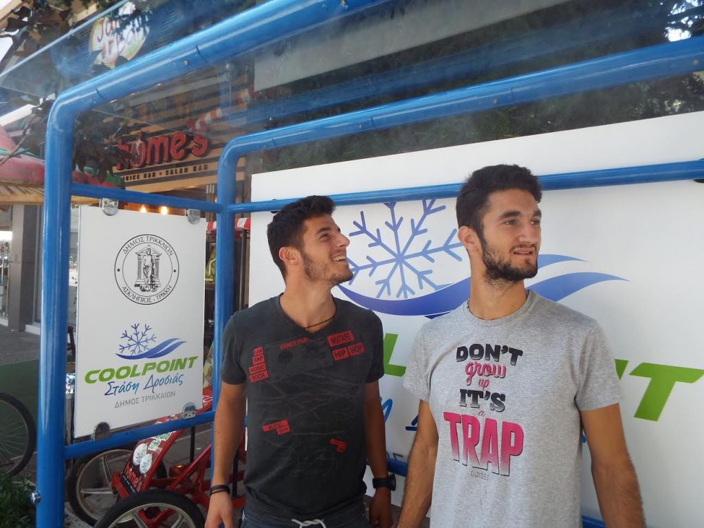 «Στάση δροσιάς»… κυριολεκτικά! Ο Δήμος Τρικκαίων εγκατέστησε το πρώτο Cool Point (Σημείο Δροσιάς, κατά λέξη) έξω από το Δημαρχείο, προσφέροντας ανάσες σε όσους καίγονται από τον καύσωνα. Πρόκειται για μια κατασκευή, η οποία με το πάτημα ενός κουμπιού πετά δροσοσταλίδες και αμέσως αλλάζει τη θερμοκρασία στο συγκεκριμένο σημείο. Ολα γίνονται με το απλό πάτημα ενός κουμπιού στη βάση της «στάσης», στην οποία τοποθετήθηκε το συγκεκριμένο σύστημα.