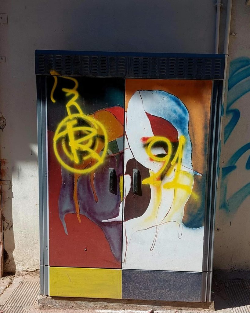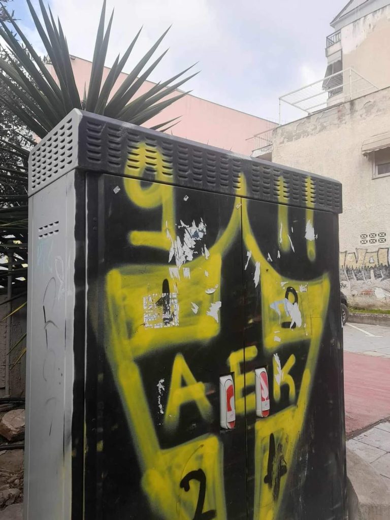 Υπαρχουν πολλοι τρόποι οπαδέ της καθε ομαδας να εκφράσεις την αγάπη σου για την ομάδα !! ΟΧΙ όμως πάνω στον κόπο του κάθε καλλιτέχνη που εχει αφιερώσει χρόνο , ενέργεια και συναίσθημα για να ομορφύνει την πόλη.