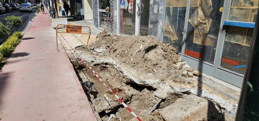 Τα Τρίκαλα στα… καλύτερά τους, με ανοιχτές πληγές παντού και το ράβε ξήλωνε στους κεντρικούς δρόμους της πόλης να συνεχίζεται.