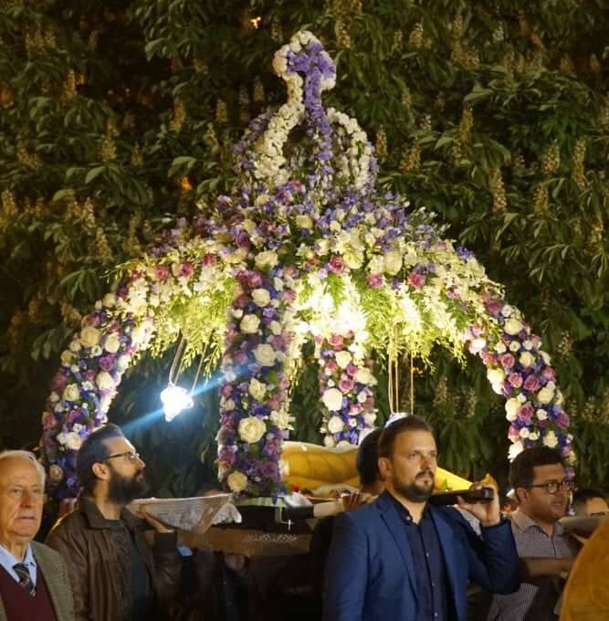Ειδικά φέτος ήταν πιο εντυπωσιακός από ποτέ, με τον στολισμό του να τον επιμελούνται οι εφημέριοι του Ναού, ο Πρωτοσύγκελλος Αλέξιος Κανίνας και ο π. Κωνστατίνος Κούκος. Τον συνόδευσαν δε μέχρι το κέντρο της πόλης εκατοντάδες ενορίτες, μη διστάζοντας να περπατήσουν περισσότερα από 4 χιλιόμετρα συνολικά.