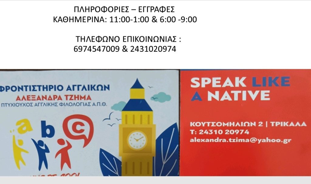 Θέλετε να εμπιστευτείτε το παιδί σας στην εκμάθηση ξένης γλώσσας; Είστε ενήλικας και πρέπει να μάθετε γρήγορα speaking ή να αποκτήσετε τίτλο σπουδών για εξετάσεις;… Στα Τρίκαλα η Αλεξάνδρα Τζήμα είναι η επιλογή.