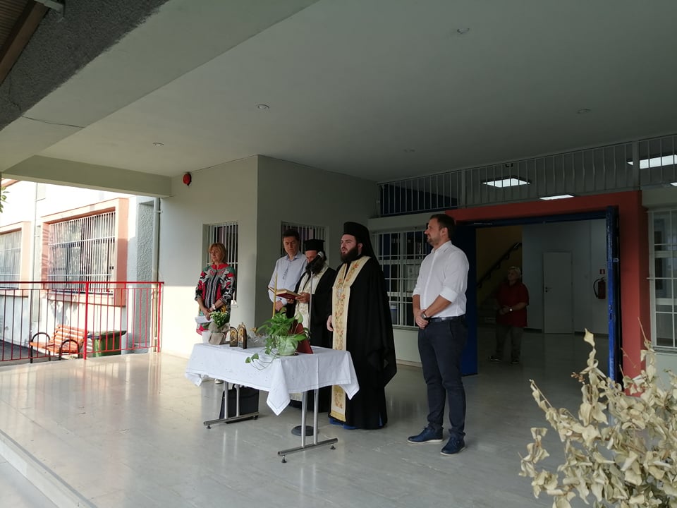 Τελέστηκε ο αγιασμός για την έναρξη της σχολικής χρονιάς στο 1ο Δημοτικό Σχολείο Τρικάλων υπό του Πρωτοσυγκέλου  της Ιεράς Μητρόπολης Τρίκκης και Σταγών Αλεξίου Κανίνα.