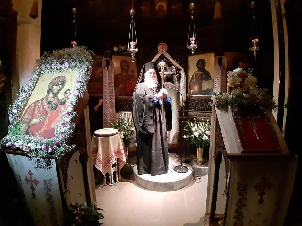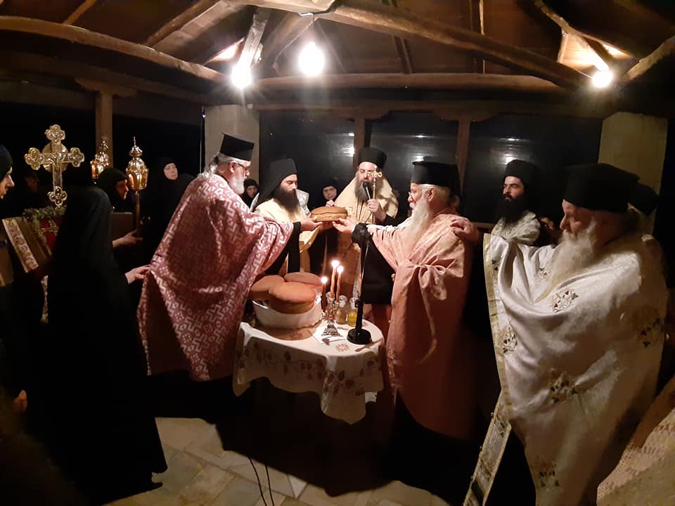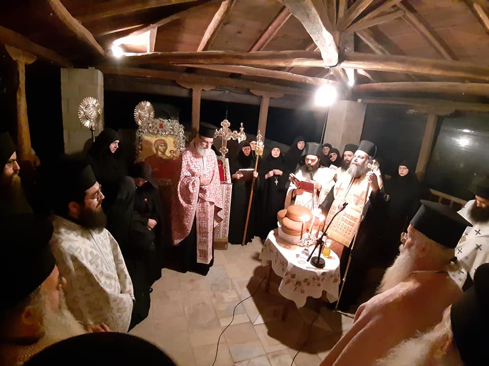 Ακολούθησε δέηση και αμέσως μετά τελέστηκε στο Καθολικό της Μονής ιερά Αγρυπνία λειτουργούντος του Μητροπολίτου Ναζαρέτ Κυριακού και του Μητροπολίτου Τρίκκης Χρυσοστόμου.