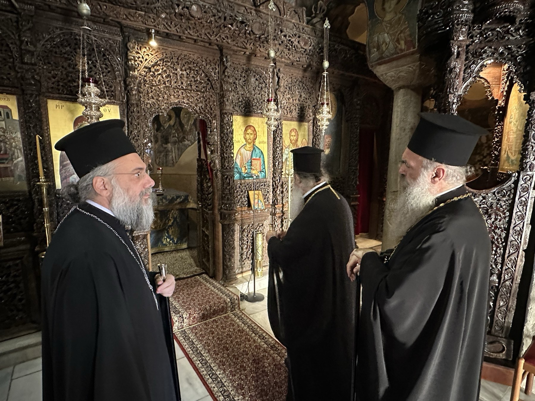Οι δυο Αρχιερείς έγιναν δεκτοί σε πνεύμα αγάπης από τον κ. Χαρίτωνα και στη συνέχεια οι τρεις και η συνοδεία τους μετέβησαν για προσκύνημα στην Ιερά Μονή Παναγίας Ολυμπιώτισσας.