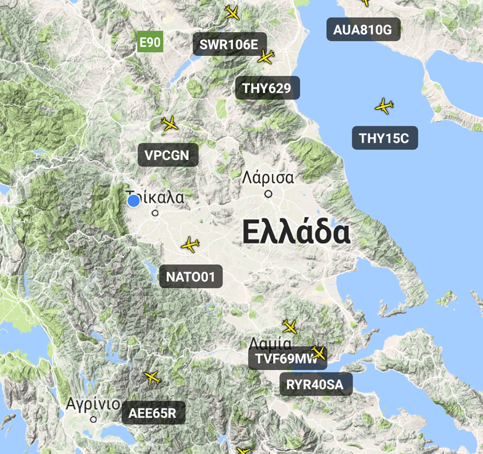 Πρόκειται για συνηθισμένη πτήση η οποία εκτελείται κάθε χρόνο την 1η Νοεμβρίου και ανανεώνει τα δεδομένα στους χάρτες της συμμαχίας. Στις φωτό του trikalavoice.gr φαίνονται οι… σχηματισμοί πάνω από τα Τρίκαλα, αλλά και η πτήση του αεροπλάνου.