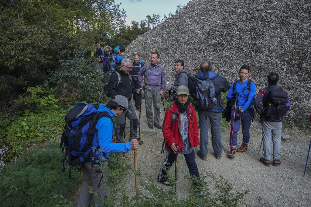 Από εδώ ακολουθεί μια πολύ απότομη κατάβαση σε στενό πέρασμα. Για λόγους ασφάλειας χρησιμοποιούμε σχοινί που δίνει την ευκαιρεία ενός μικρού ραπέλ. Αν και αυτό καθυστερεί πολύ την πορεία μας, είναι μια μάλλον ευχάριστη έκπληξη για την ομάδα μας που πραγματικά το διασκέδασε. Βέβαια οι δυσκολίες της κατάβασης προς τον βράχο της «Σφίγγας» δεν σταματούν εδώ αφού συνεχίζουμε σε μικρό φαράγγι που κόβεται απότομα σε αρκετά σημεία του.