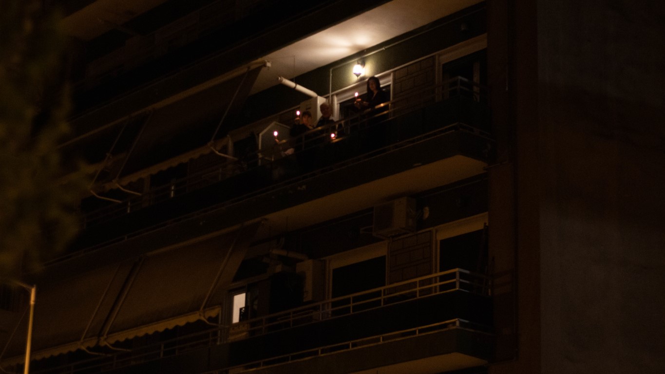 Φωταγωγημένοι, μα άδειοι οι δρόμοι και οι πλατείες και ο κόσμος στα μπαλκόνια με τις λαμπάδες αναμμένες να ψέλνει το “ΧΡΙΣΤΟΣ ΑΝΕΣΤΗ”. Χρόνια πολλά και του χρόνου στους Ναού μας…