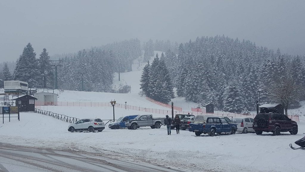 Στο σαλέ του Περτουλίου φτάνουν κατά δεκάδες οι επισκέπτες καθώς οι δρόμοι, παρά τις τελευταίες χιονοπτώσεις είναι ανοιχτοί και το πάρκινγκ πεντακάθαρο. Στο σαλέ απολαμβάνουμε ζεστά ροφήματα, παραδοσιακά πιάτα και το… χιόνι από τα παράθυρα!!!…