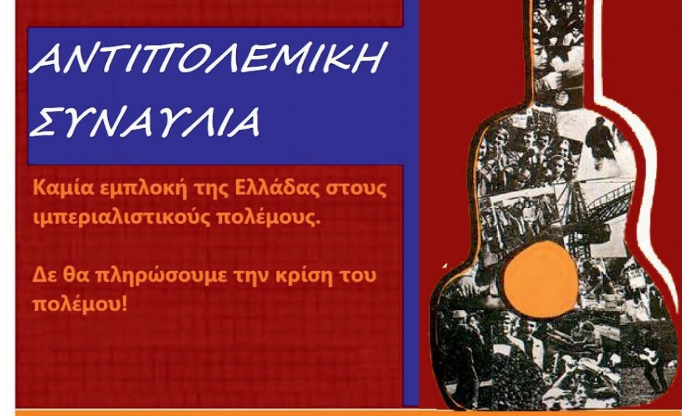 Η Ελληνική Επιτροπή για τη Διεθνή Ύφεση και Ειρήνη (ΕΕΔΥΕ) και το παράρτημα Τρικάλων του Πανελληνίου Μουσικού Συλλόγου καλούν το λαό, τα σωματεία και άλλους φορείς των Τρικάλων να συμμετέχουν στην Αντιπολεμική Συναυλία που θα γίνει την Κυριακή 3 Απριλίου στις 7:00μμ στην πλατεία Ρήγα Φεραίου.