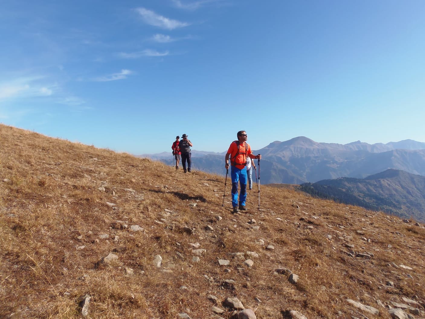 Μια μικρή στάση λοιπόν για να γράψουμε και τα δικά μας ονόματα και ξεκίνημα για το τελευταίο στάδιο της ανάβασης. Βγαίνουμε σε χαρακτηριστικό διάσελο, νότια της κορυφής και η θέα ήδη μας αποζημιώνει. Δέκα λεπτά αργότερα βρισκόμαστε στην κορυφή. Οταν ο καιρός το επιτρέπει απο την κορυφή του Χατζή η θέα είναι μαγευτική. Αθαμανικά Όρη, Άγραφα, Όρη Βάλτου και πολλές άλλες κορυφές της Πίνδου μας χαρίζουν υπέροχες εικόνες. Μετά τις απαραίτητες φωτογραφίες κορυφής ακολουθεί η επιστροφή. Προς το τέλος της πορείας μας, μια συνάντηση με εναν βοσκό της περιοχής θα δώσει διαφορετικό τόνο και χρώμα στην κατάβαση. Ολιγόλεπτη στάση και συζήτηση μαζί του για τον τρόπο ζωής και τις δυσκολίες του επαγγέλματος. “Δύσκολη η ζωή εδώ πάνω” τόνισε χαρακτηριστικά…Μετά το σύντομο διάλογο, συνεχίσαμε την πορεία μας τραβερσάροντας την ίδια πλαγιά όπου είχαμε διασχίσει και το πρωί και έτσι καταλήξαμε πάλι στο σημείο εκκίνησης. Η μέρα μας έκλεισε στην Μεσοχώρα,όπου ο φίλος μας Γιώργος μας υποδεχτηκε με εκλεκτά εδέσματα της περιοχής στην ταβέρνα της πλατείας.