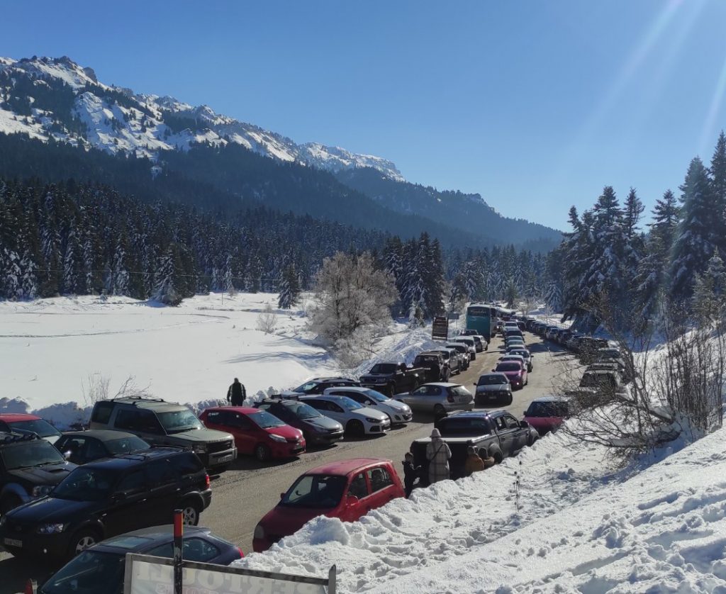 Όπως κατέγραψε το trikalavoice.gr (ΕΔΩ) από νωρίς χθες το πρωί σχηματίζονταν ουρές αυτοκινήτων σε μήκος 10 χλμ. για να φτάσουν στο Χιονοδρομικό. Σύμφωνα με τις εκτιμήσεις της Τροχαίας Τρικάλων, η οποία ανέλαβε και ρύθμισε άριστα την κάθοδο των οχημάτων το απόγευμα (ΕΔΩ), πέρασαν από την Πύλη για τα ορεινά περί τα… 3.000 αυτοκίνητα (!!!), τα περισσότερα με προορισμό το Περτούλι. Ο κόσμος υπολογίζεται πολλαπλάσιος ασφαλώς. Σημειώνεται ότι το πάρκινγκ του Χιονοδρομικού χωράει στην καλύτερη… 600-700 αυτοκίνητα, οπότε λογικό να επικράτησαν σκηνές σαν αυτές στη φωτό του trikalavoice.gr. Πάντως δούλεψαν πολύ καλά οι επαγγελματίες της περιοχής και πήραν σημαντική ανάσα εν μέσω προβλημάτων: