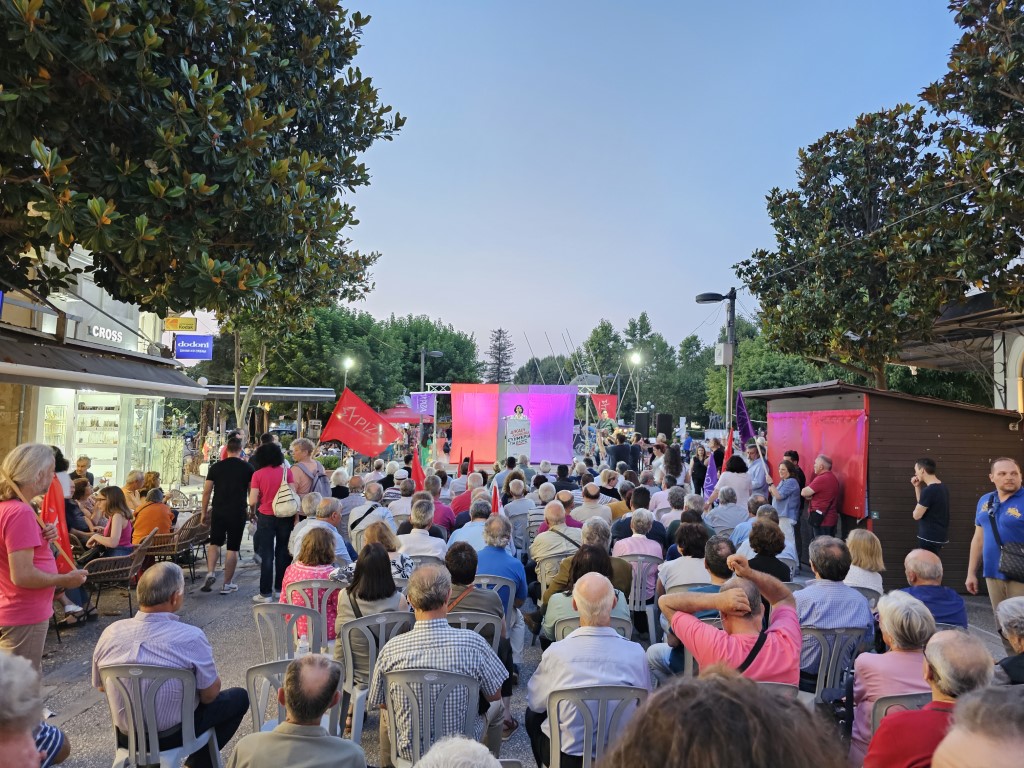 Ομιλητές ήταν οι Μακρίνα – Βιόλα Κωστή και ο αναπληρωτής γραμματέας του κόμματος Γιώργος Βασιλειάδης. Αμφότεροι μίλησαν για την ανάγκη ανατροπής του εκλογικού αποτελέσματος της 21ης Μαϊου επισημαίνοντας τους κινδύνους της όποιας “παντοδυναμίας” Μητσοτάκη. Αναφέρθηκαν στο πρόγραμμα του ΣΥΡΙΖΑ το οποίο προβλέπει ενίσχυση των μικρομεσαίων και στάθηκαν στην ανάγκη για “δικαιοσύνη παντού”.