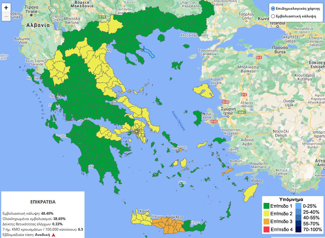 Στα Τρίκαλα καταγράφηκε έκρηξη κρουσμάτων το τελευταίο 24ωρο καθώς βεβαιώθηκαν 16 νέες λοιμώξεις. Η περιοχή μας πάντως παραμένει στο χαμηλότερο επίπεδο, το “πράσινο” στο σχετικό χάρτη, όπως παρακάτω.