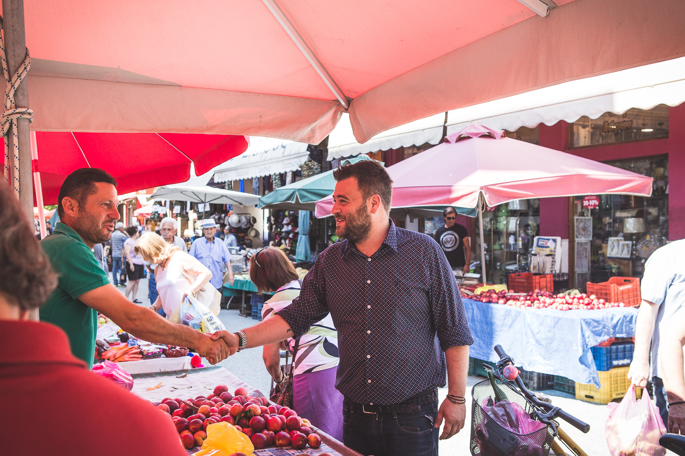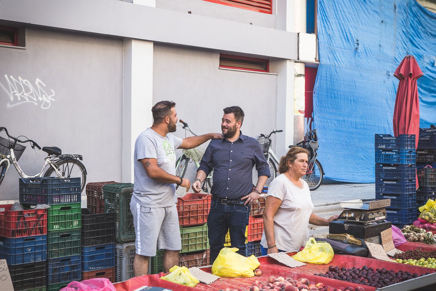 Το πρωί της Δευτέρας ο νεαρός πολιτικός επισκέφθηκε την εβδομαδιαία λαϊκή αγορά, πλαισιωμένος από φίλους και συνεργάτες, ώστε να ενημερωθεί για τα προβλήματα που αντιμετωπίζουν οι παραγωγοί, οι μικροπωλητές και οι καταναλωτές.