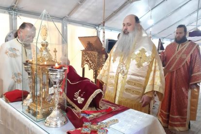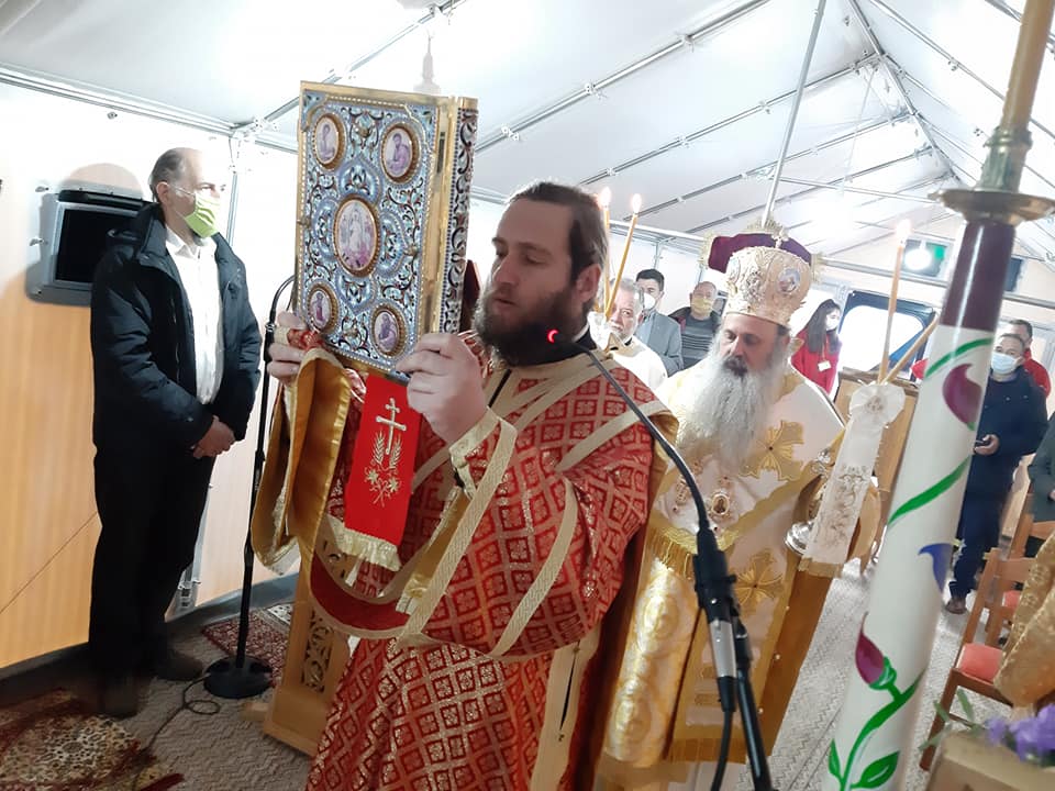Όπως κατέγραψε το trikalavoice.gr η Θεία Λειτουργία τελέστηκε σε αυτοσχέδιο Ναό που στήθηκε με μέριμνα της Περιφέρειας Θεσσαλίας και ειδικά του αντιπεριφερειάρχη Τρικάλων Χρήστου Μιχαλάκη, ανδρός ευαίσθητου σε θέματα πίστεως και στήριξης των ανθρώπων των χωριών της επαρχίας μας. Μάλιστα οι κάτοικοι του χωριού τον ευχαρίστησαν ιδιαίτερα για την άμεση ανταπόκριση που έδειξε για επίλυση των προβλημάτων που προκάλεσαν οι μεγάλοι σεισμοί του Μαρτίου, ορισμένοι εκ των οποίων είχαν επίκεντρο… λίγα μέτρα απ’ το χωριό!!!…