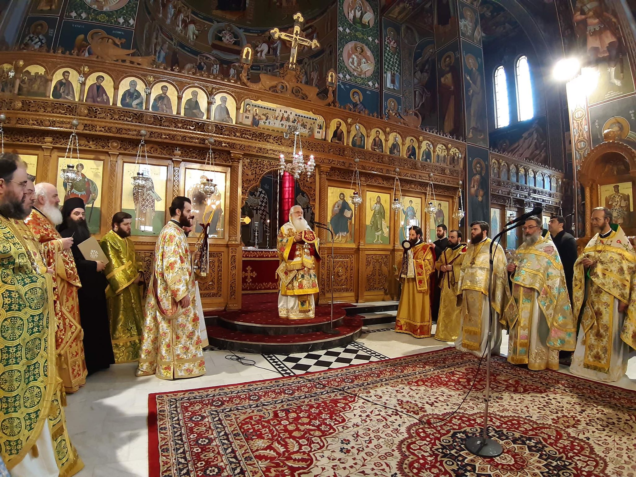Με λαμπρότητα εορτάστηκαν σήμερα Τρίτη, μνήμη του Αγίου Θεοκλήτου, τα ονομαστήρια του Μητροπολίτου Σταγών & Μετεώρων.