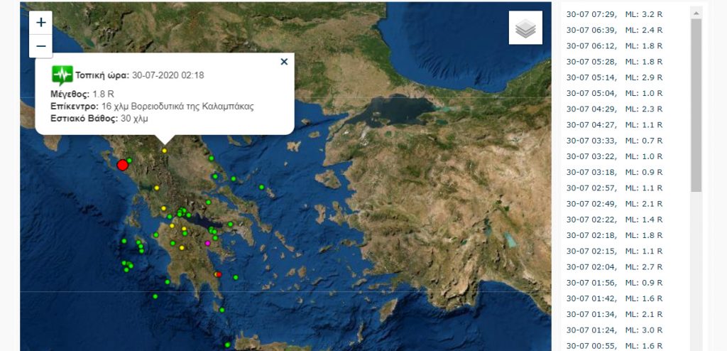Ασθενής σεισμική δόνηση μεγέθους 1,8 βαθμών της Κλίμακας Ρίχτερ σημειώθηκε λίγο μετά τις 2 τα ξημερώματα της Πέμπτης κοντά στην Καλαμπάκα.