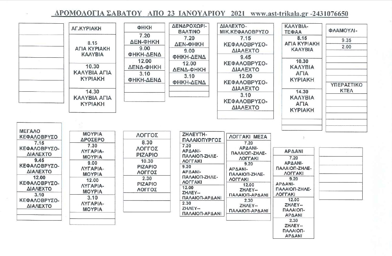 Το Αστικό ΚΤΕΛ Τρικάλων ενημερώνει το επιβατικό κοινό ότι από αυτό το Σάββατο αρχίζουν ξανά δρομολόγια από και προς την πόλη, όπως παρακάτω: