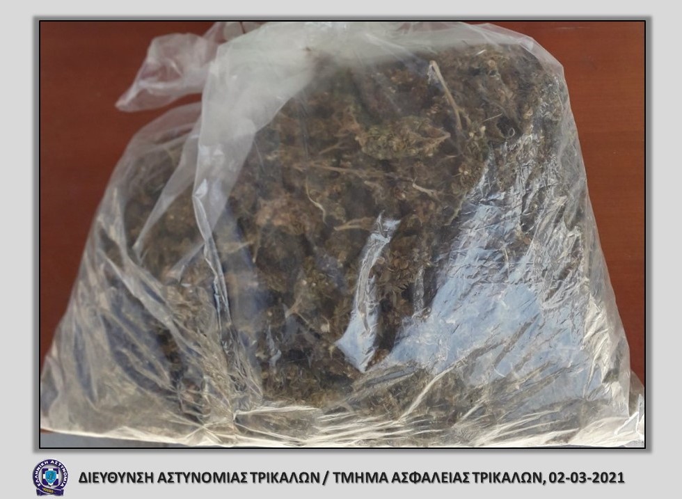 Ειδικότερα, μετά από κατάλληλη αξιοποίηση στοιχείων, διενεργήθηκε νομότυπη έρευνα στην οικία του δράστη, κατά την οποία βρέθηκε με τη συνδρομή του αστυνομικού σκύλου ανίχνευσης ναρκωτικών της Διεύθυνσης Αστυνομίας Τρικάλων « FLEX » και κατασχέθηκε μία νάιλον συσκευασία με -845- γραμμάρια ακατέργαστης κάνναβης.