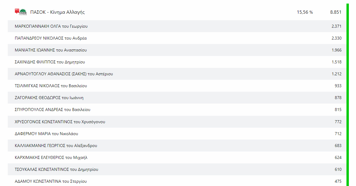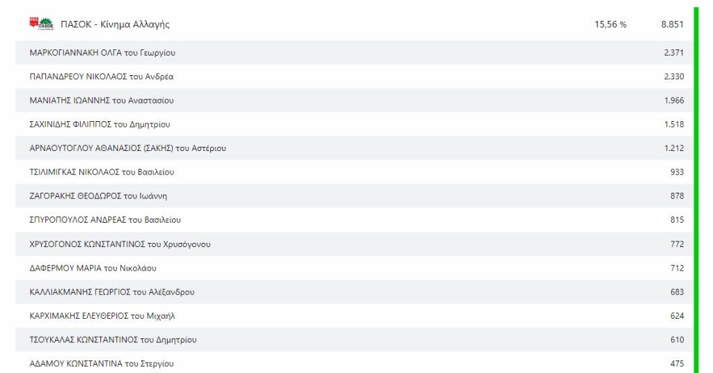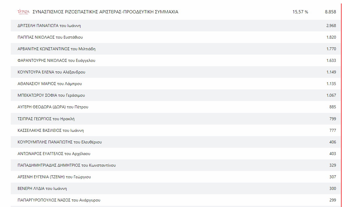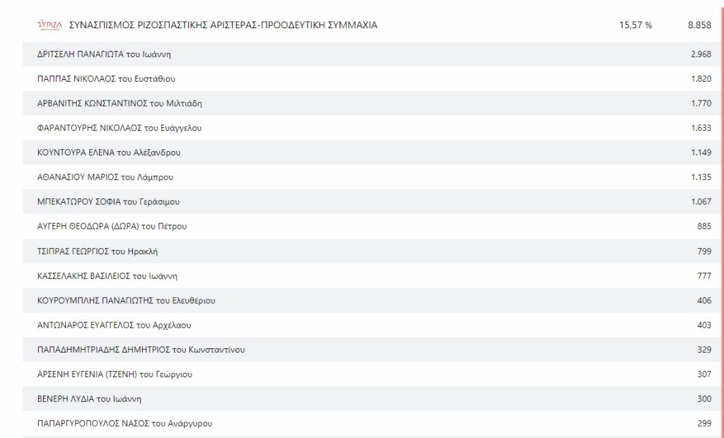 Αναμενόμενα 1η από τον ΣΥΡΙΖΑ η Τρικαλινή Παναγιώτα Δριτσέλη, ενώ από το ΠΑΣΟΚ σάρωσε η Όλγα Μαρκογιαννάκη. Δείτε τα αποτελέσματα: