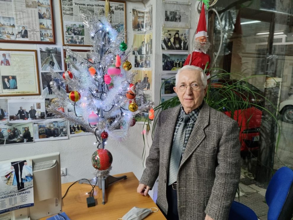Χριστουγεννιάτικο δέντρο… εποχής στα Τρίκαλα. Χρονολογείται από τα τέλη της δεκαετίας του ’60 τόσο η βάση του όσο και τα… στολίδια του!…