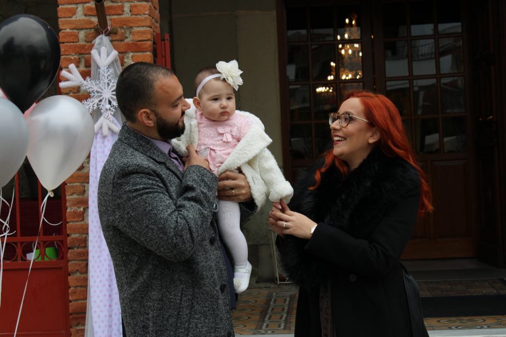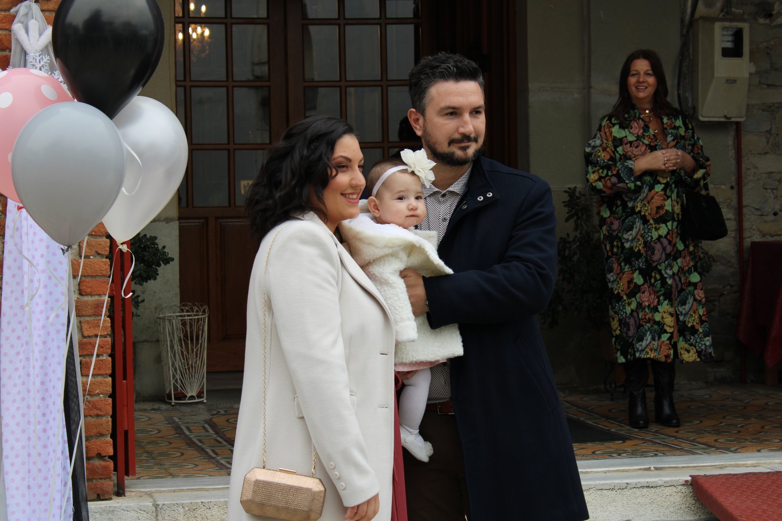 Το Ιερό Μυστήριο τελέστηκε στον Ιερό Ναό Αγίου Στεφάνου Τρικάλων και ο ανάδοχος Στέφανος Γιάννιτς χάρισε στη λαμπερή μικρή το όνομα “Γεωργία”. Η βάφτιση (με θέμα “πιγκουίνος” από τη Μαρία Βλαχάβα) έγινε σε στενό οικογενειακό και φιλικό κύκλο.