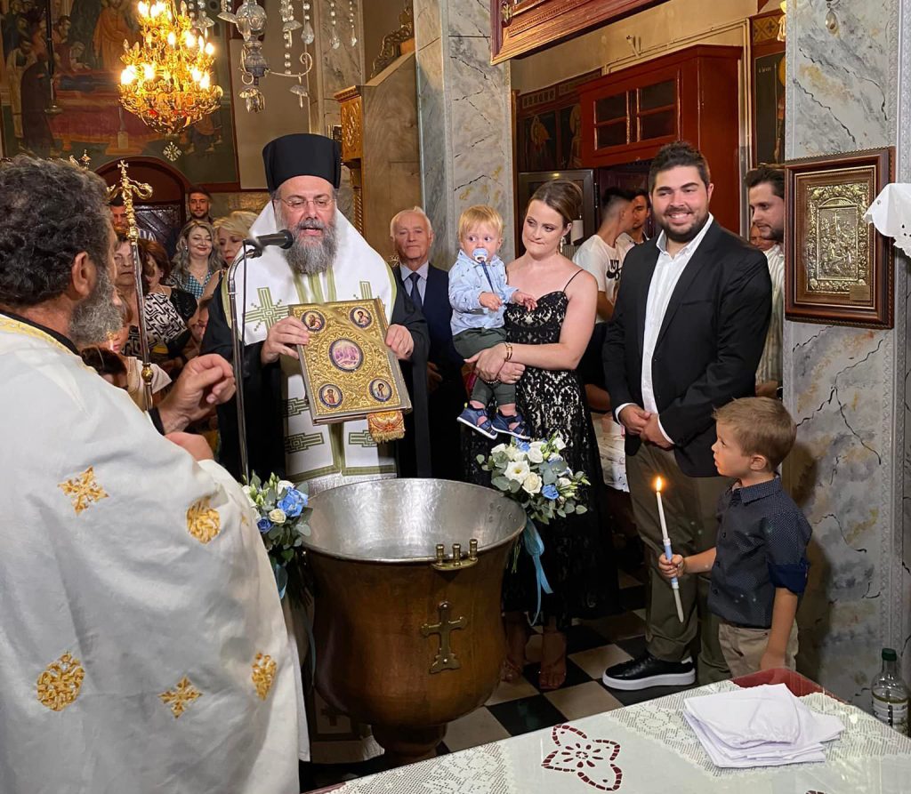 Όπως κατέγραψε το trikalavoice.gr το Ιερό Μυστήριο τελέστηκε υπό του Μητροπολίτου Τρίκκης, Γαρδικίου και Πύλης Χρυσοστόμου στον Ιερό Ναό Αγίων Κωνσταντίνου και Ελένης Ελευθεροχωρίου και η νονά Νίκη Συνάτικα χάρισε στον μικρό το όνομα “Δημήτρης”.