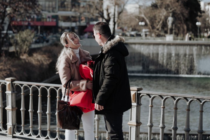 Ήρθαν από Γρεβενά όπου διαμένουν μόνιμα για να δουν συγγενείς και φίλους της Αθανασίας, η οποία κατάγεται από τα Τρίκαλα. Και σχεδίασε τα πάντα στη λεπτομέρεια για να την εκπλήξει. Βόλτα στην κεντρική πεζογέφυρα και… πρόταση γάμου, μπροστά στο φακό των παιδιών της V.A. Photography που κατέγραψαν το γεγονός για το trikalavoice.gr: