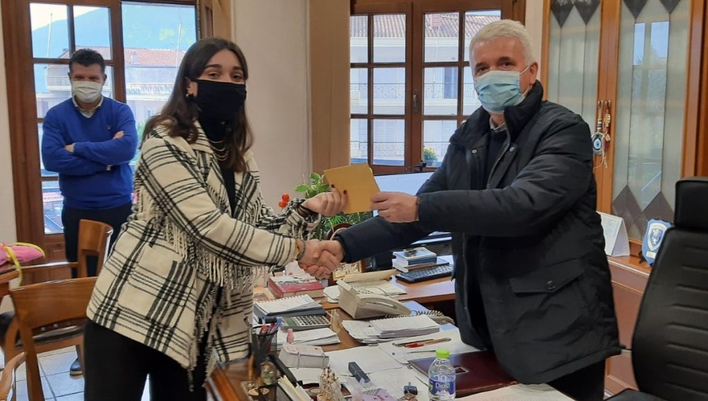 Ο Δήμαρχος αφού συνεχάρη την Ευθυμία για την επιτυχία της και την πρωτιά σε επίπεδο Νομού στην Ιατρική Σχολή, της ευχήθηκε καλή σταδιοδρομία, πρόοδο και επιτυχίες στη ζωή της και της συνέστησε να συνεχίσει τη σωστή και μεθοδευμένη μελέτη πάνω στο αντικείμενο της έτσι ώστε να επιτύχει τους στόχους που έχει θέσει και ταυτόχρονα να κάνει περήφανη την οικογένειά της δίνοντας το καλό παράδειγμα προς τις επόμενες γενιές μαθητών – σπουδαστών.