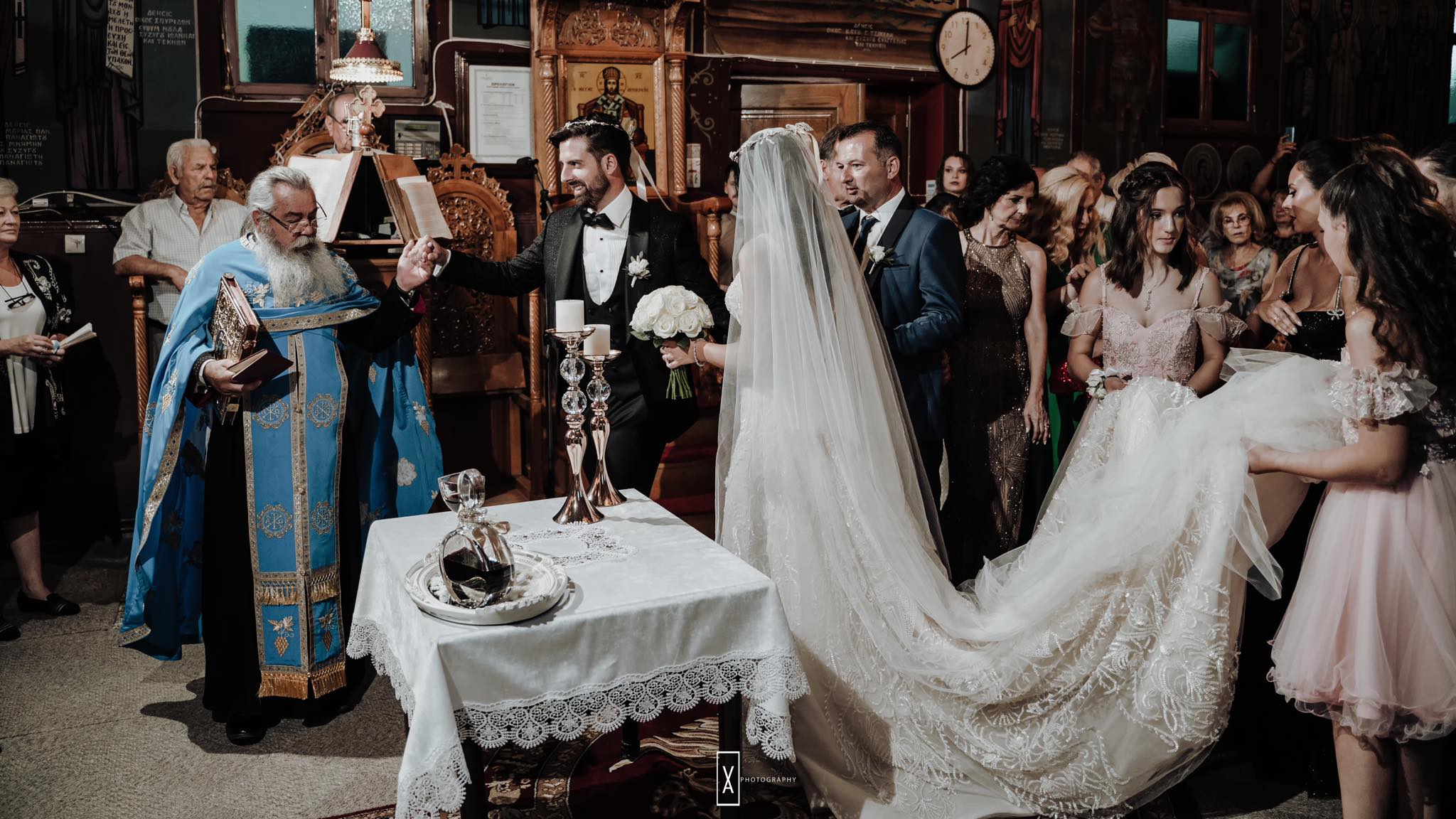 Το Ιερό Μυστήριο τελέστηκε στον κεντρικό Ναό του χωριού Άγιος Δημήτριος (Τσούγκουρο) και είχε όλα τα χαρακτηριστικά ενός παραδοσιακού, Ελληνικού, γάμου. Τους δυο νέους στεφάνωσαν ο Θανάσης Κύργιας και η Ζωή Μαρκούτη, ενώ η φωτογράφιση έγινε από το team της V.A. Photography στα Μετέωρα. Δείτε εικόνες και βίντεο παρακάτω: