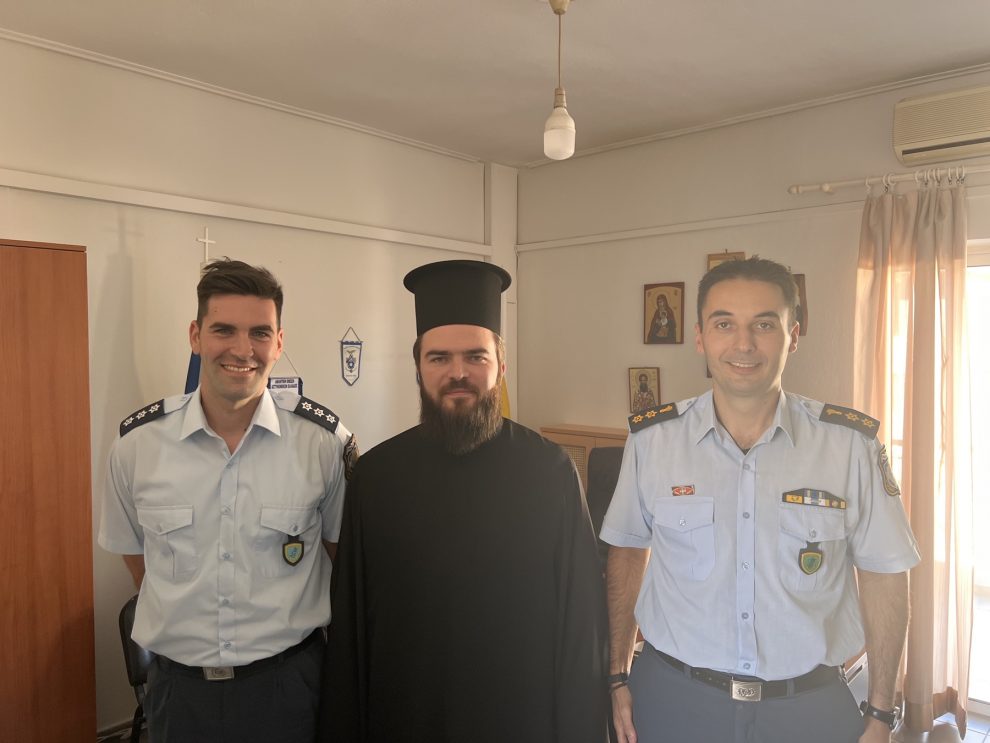 Ευλόγησε το αστυνομικό και πολιτικό προσωπικό και είχε ιδιαίτερη συνάντηση με τον νέο Υποδιευθυντή της Α.Δ. Αθανάσιο Καππά και τον νέο διοικητή της Τροχαίας Κώστα Κωστακόπουλο, στους οποίους και ευχήθηκε καλή επιτυχία στα καθήκοντά τους.