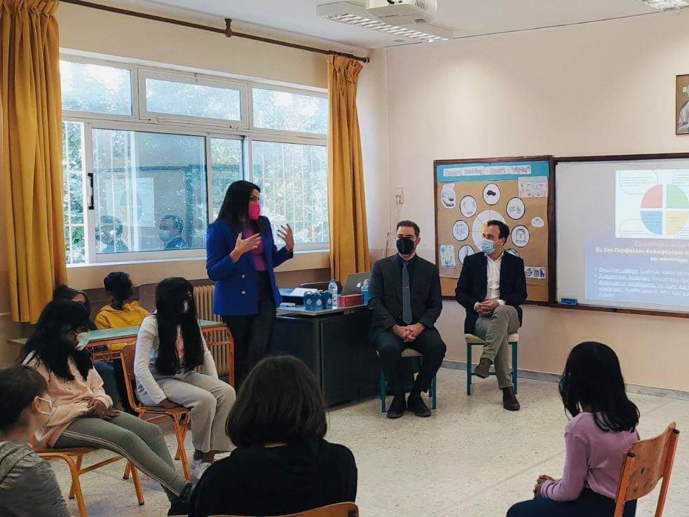 Στη συνάντηση παρέστησαν επίσης, οι κ. Νίκος Καμήλος, συντονιστής εκπαιδευτικού έργου 4ου ΠΕΚΕΣ Αττικής και Δημήτρης Καλαϊτζίδης, συντονιστής εκπαιδευτικού έργου «Εκπαίδευση για την αειφορία».